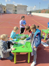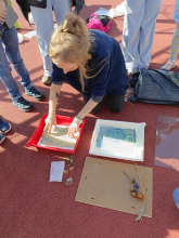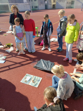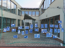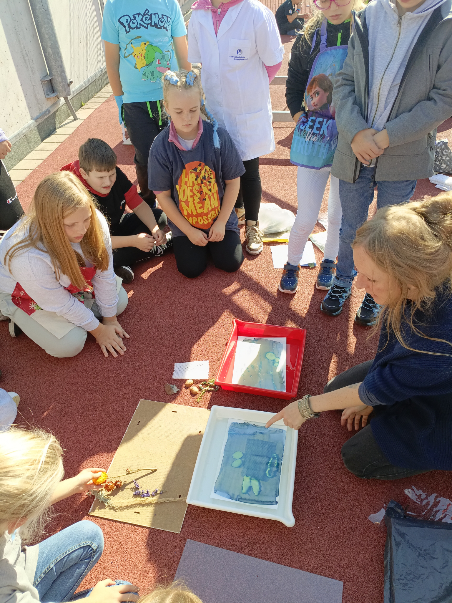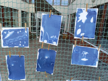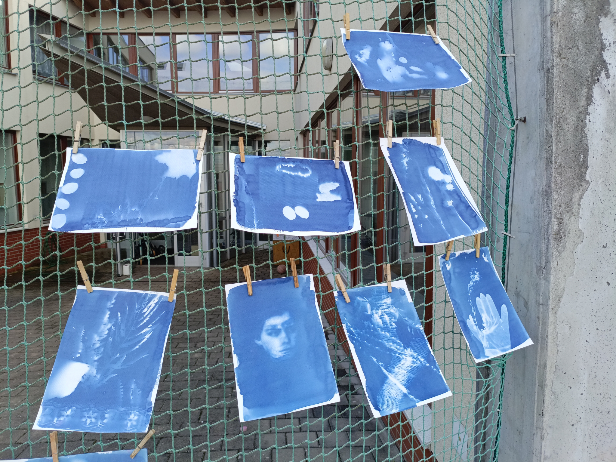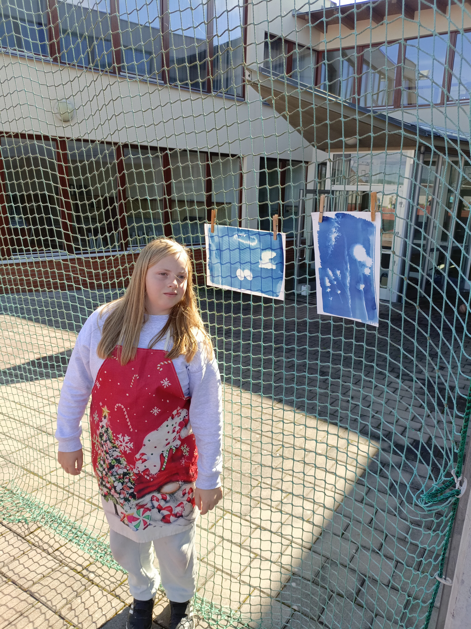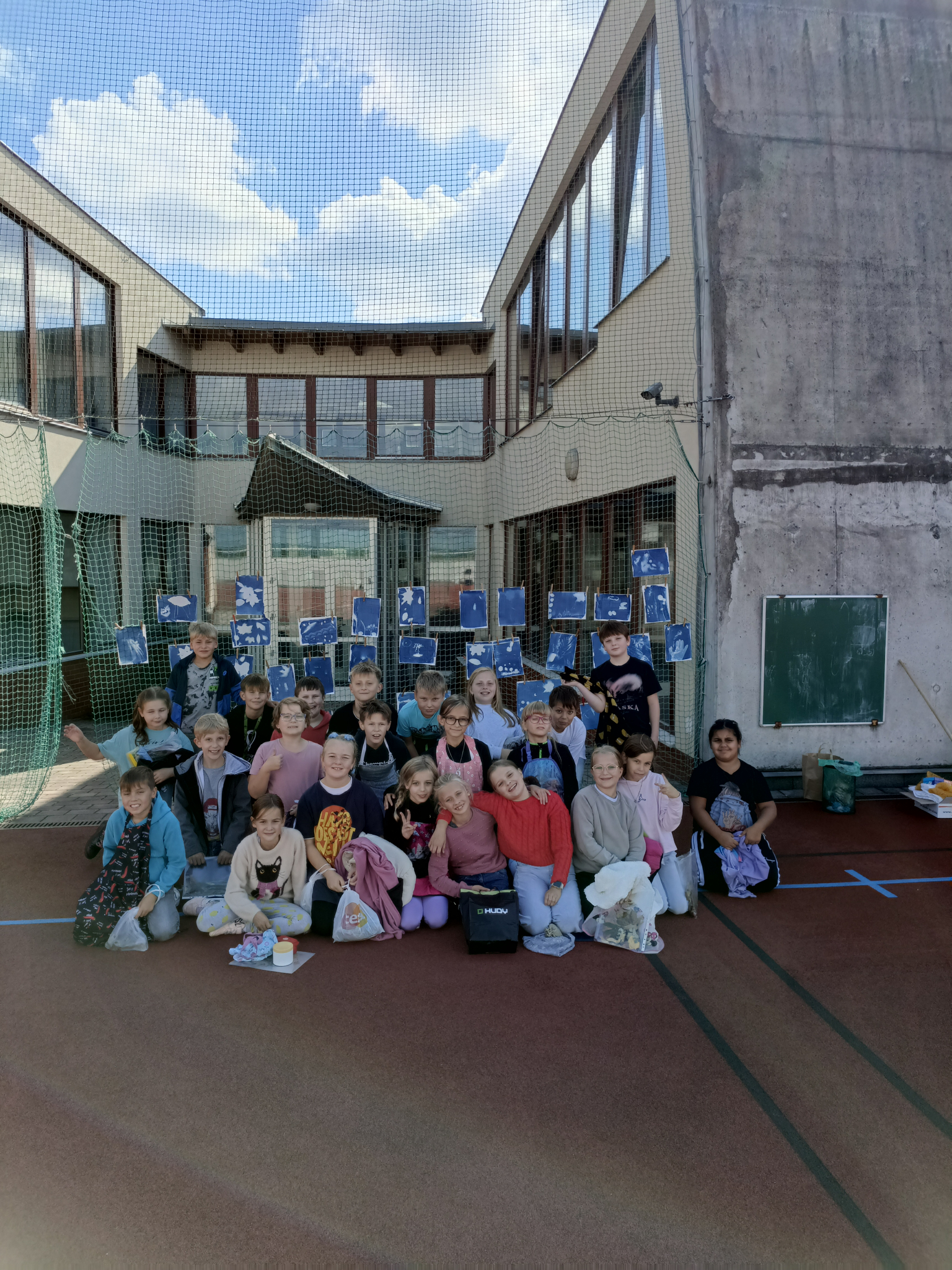 Kyanotypie je jednoduchý chemický proces, při kterém vznikají obrázky pomocí slunečního světla a světlocitlivého papíru. Můžete si na něj položit např.list, květinu, krajku nebo drobný předmět, nechat osvítit sluncem a vznikne originální modrobílý tisk. Tuto hravou kreativní techniku si vyzkoušely děti ze 4.B společně s lektorkou Jitkou Petrášovou. Obrázky se povedly, někdy překvapily a udělaly radost.