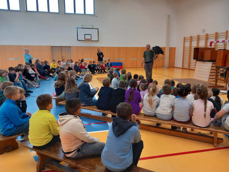 V pátek 24. 11. naše tělocvična hostila přírodovědný program o dravcích. Pan "sokolník" představil několik druhů dravců a sov na příkladu živých exemplářů. Někteří se dětem předvedli i při volném letu. Program byl doplněn o zajímavé informace z přírodopisu, zeměpisu, dějepisu i obchrany přírody.