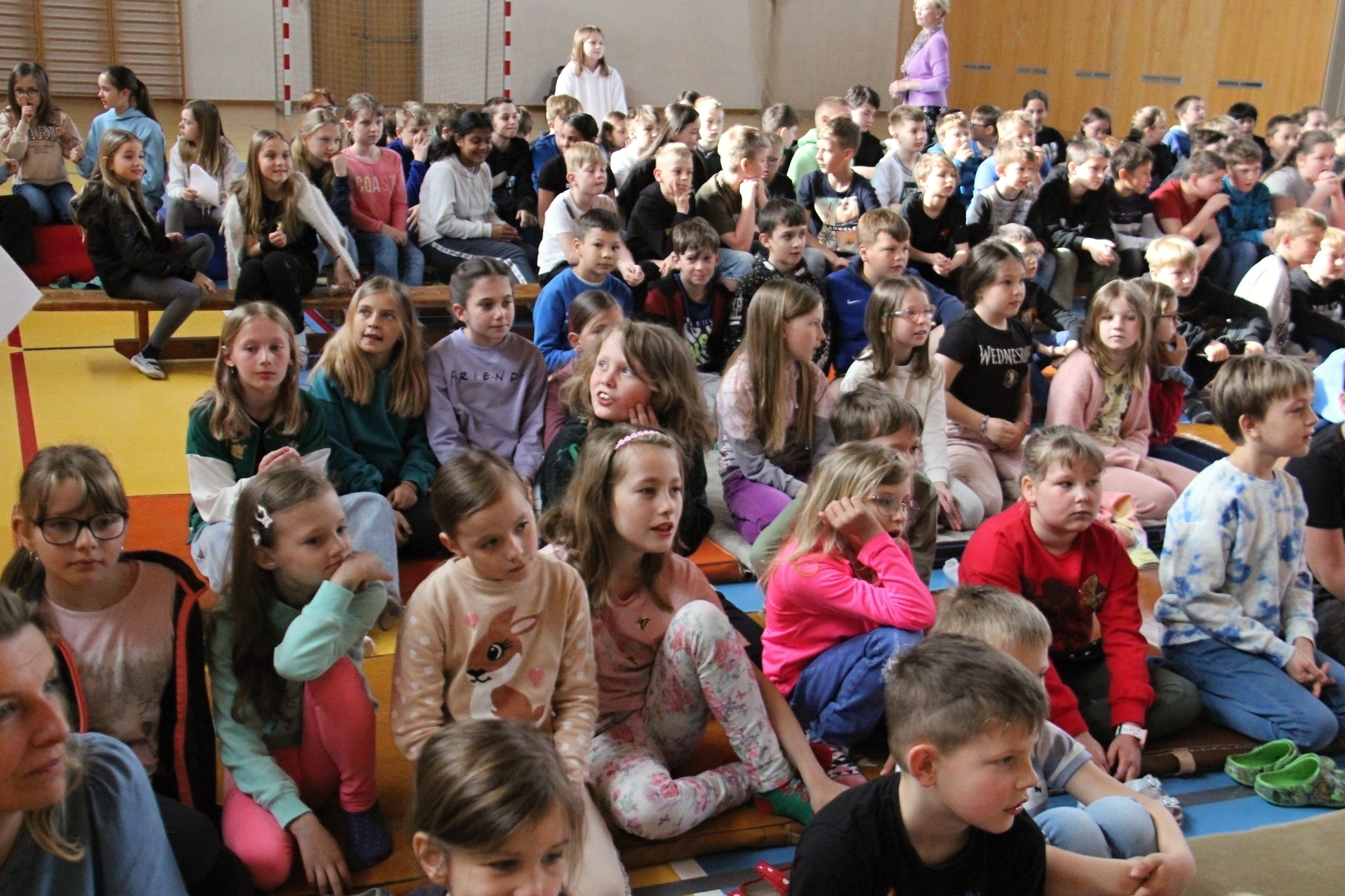 Melodie známých pohádkových a muzikálových hitů se dnes rozléhaly tělocvičnou naší školy. Autorem byla karlovarská hudební skupina MC Company, která do svého programu zapojila i naše žáky. Nejenže poznávali písničky, ale také se dozvěděli zajímavé informace o sběratelích a spisovatelích pohádek. Zlatou tečkou na závěr koncertu byla možnost zazpívat si jako sbor zpěvačky paní Kateřiny Bodlákové. Děti byly velice nadšené a na pomyslné pódium se přesunula většina diváků.