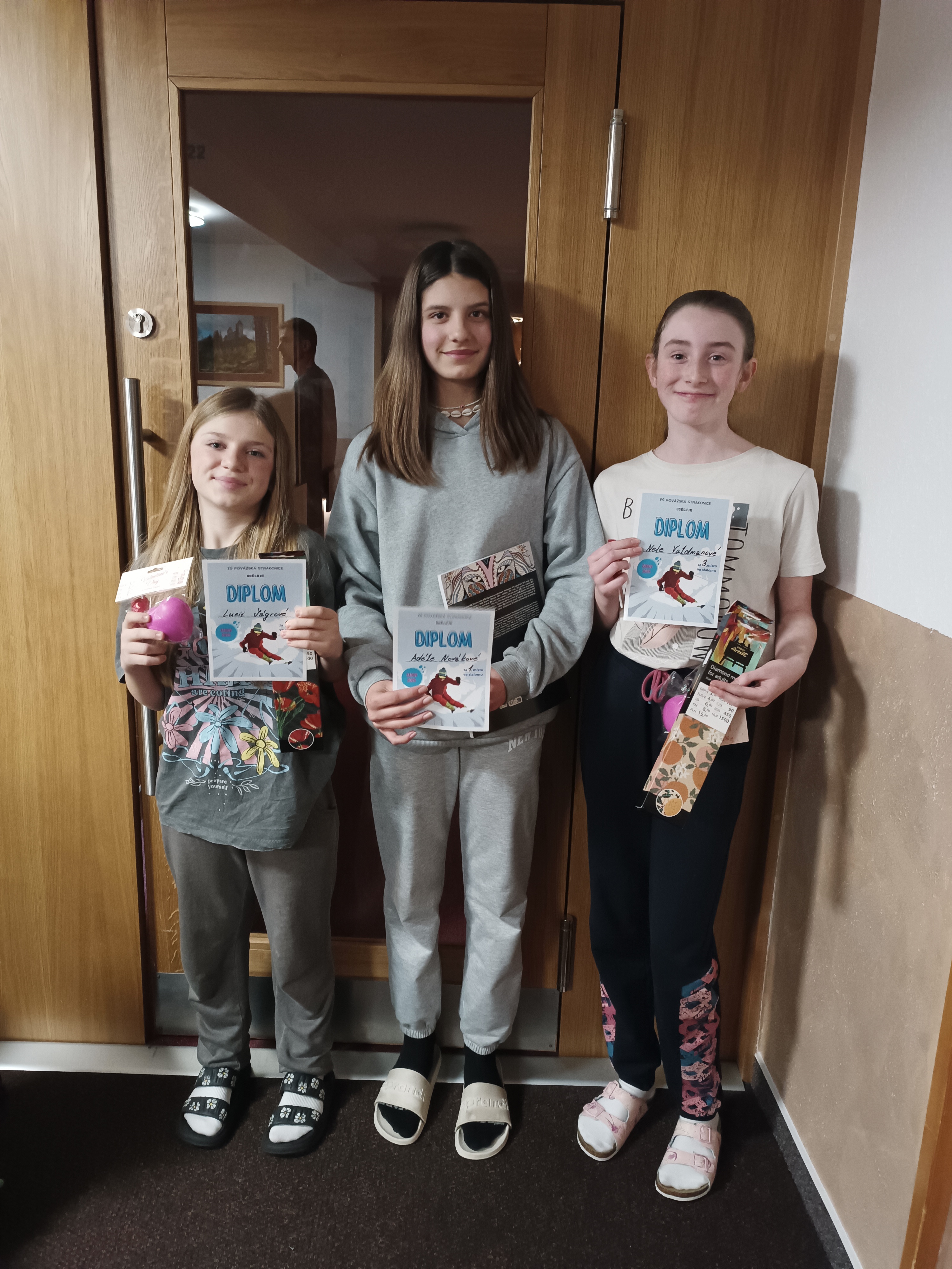 Sedmáci zdraví z lyžařského kurzu na Zadově.