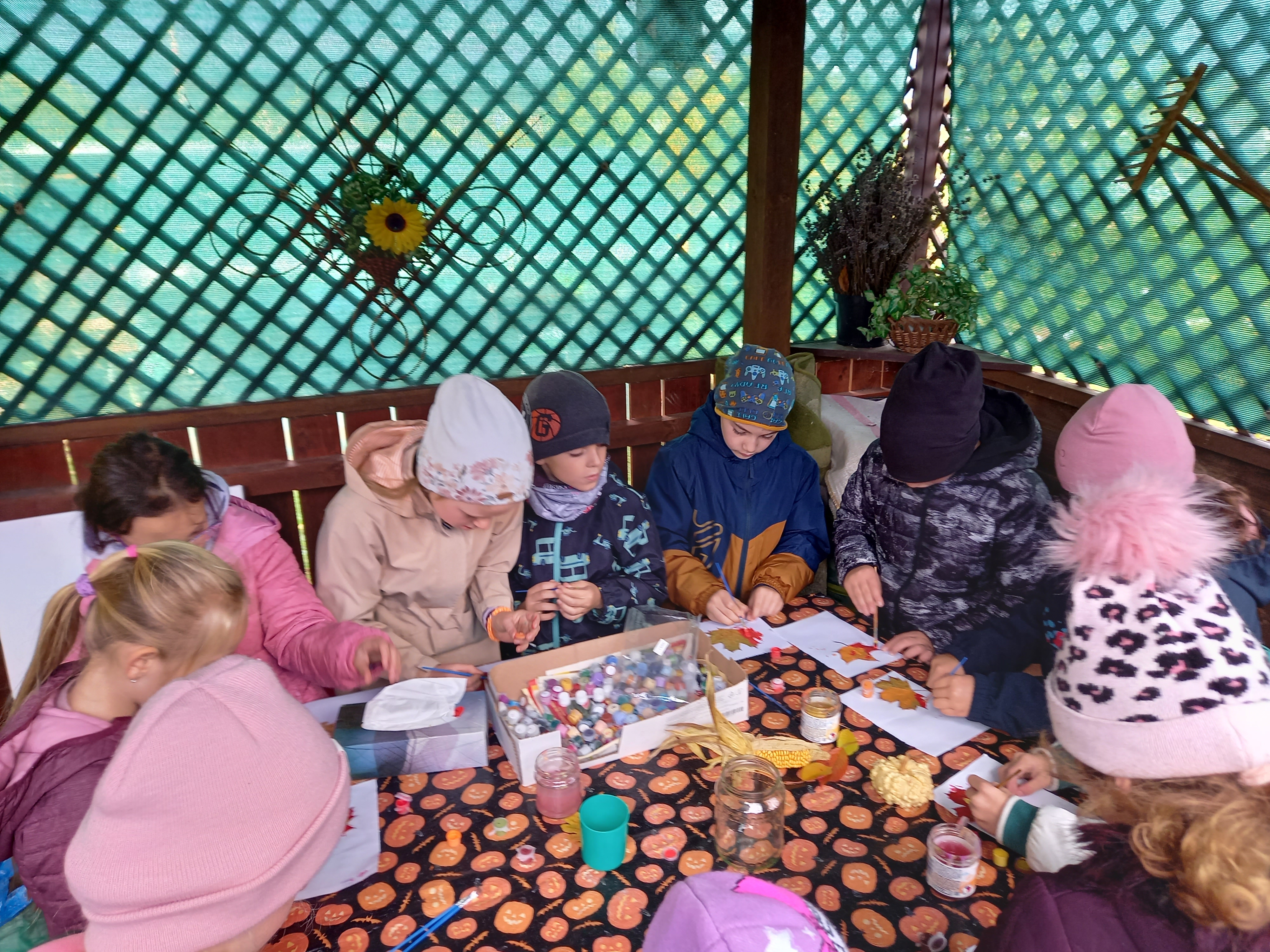 Potom jsme se vydali na další návštěvu ,,pohádkové zahrady". Tam na nás čekalo podzimní tvoření a zábavné hry. Za odměnu dostal každý z nás krásnou hnětýnku.
