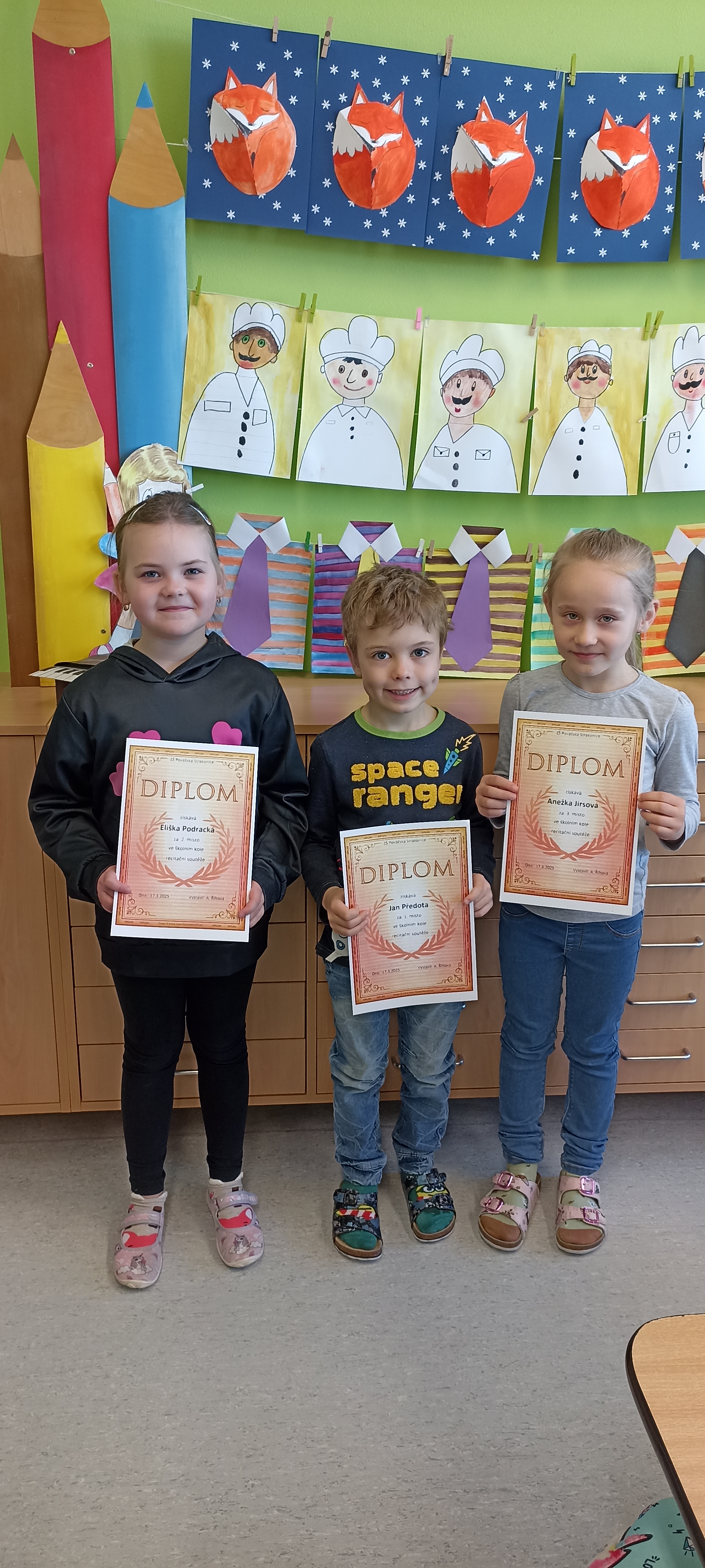 Školního kola v recitaci se zúčastnili i žáci prvních tříd. Gratulujeme Honzíkovi ,Elišce, Anežce a Melissce. Věříme, že i příští rok se na soutěži uvidíme.