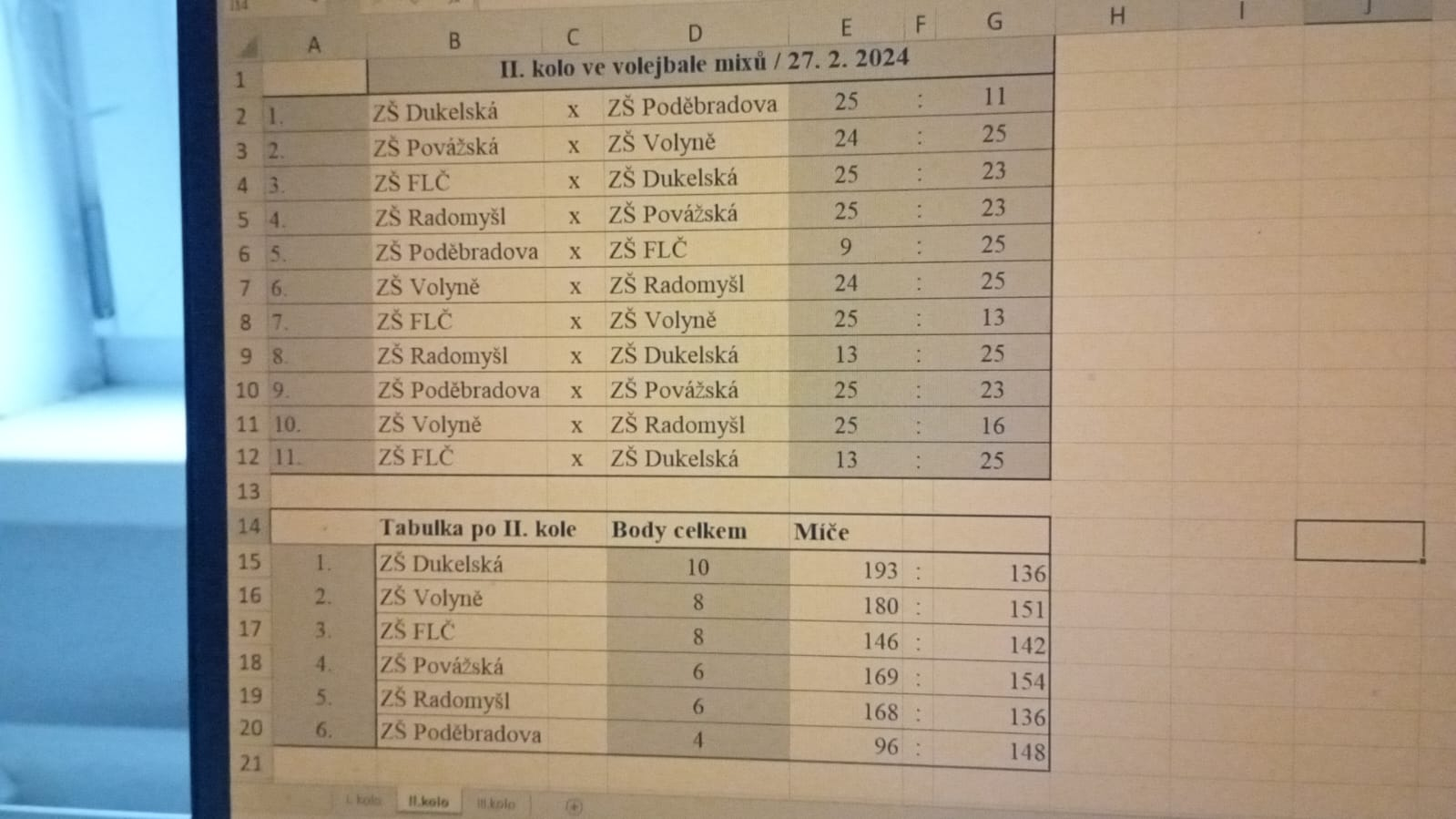 V úterý 27. 2. se odehrálo 2. kolo v okresním kole smíšeného volejbalu. Našim volejbalistům se nedařilo a tak z prvního místa spadli na průběžné 4. místo. Máme co dohánět, ale dnešní hra (na ZŠ Dukelská) nebyla bodově žádná ostuda viz. výsledky. Další turnaj hostí ZŠ Poděbradova, tak máme šanci na zlepšení. Sestava: M. Rod, R. Šimůnek, D. Jedlička, J. Herdová, V. Květoň, T. Lešková, N. Uhlíková.